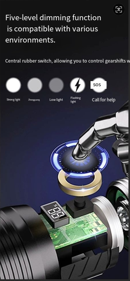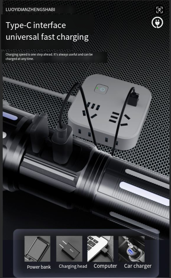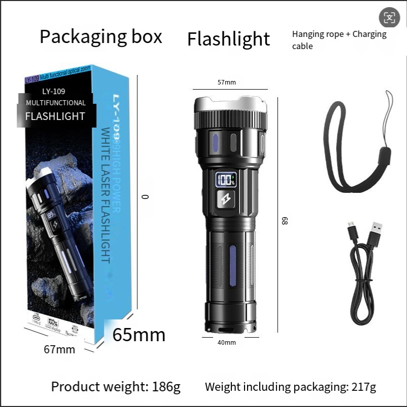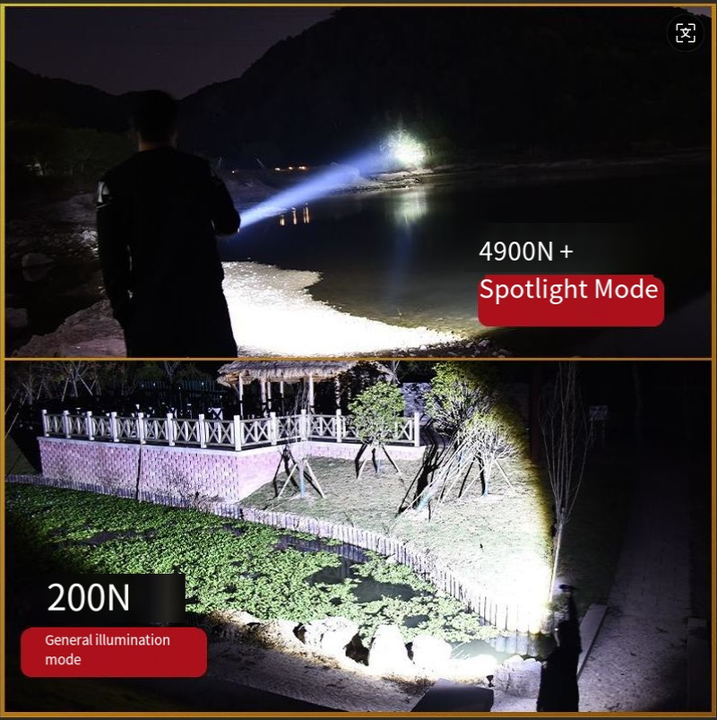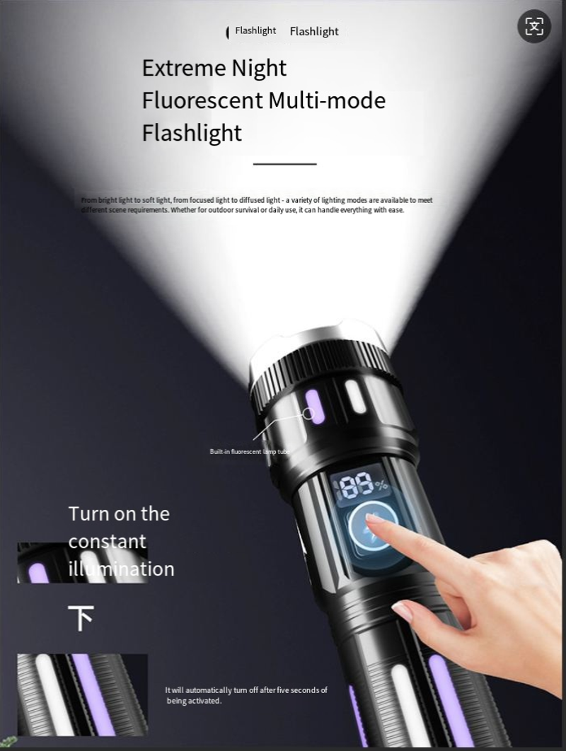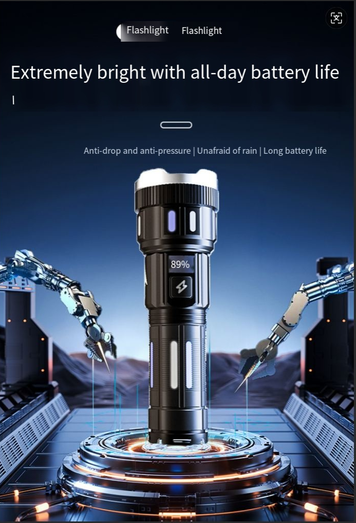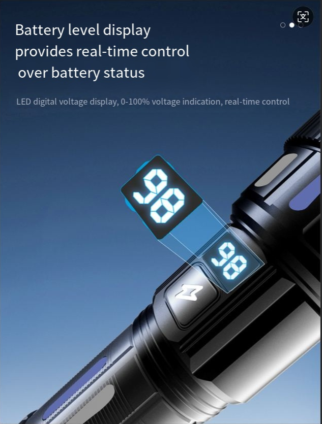 Best-selling digital electric flashlight. High-intensity multi-functional outdoor spotlight. Rechargeable with long battery life, extendable and zoomable flashlight.